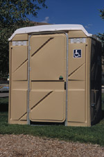 Special needs portable restroom architecturally certified to comply with ADA requirements.