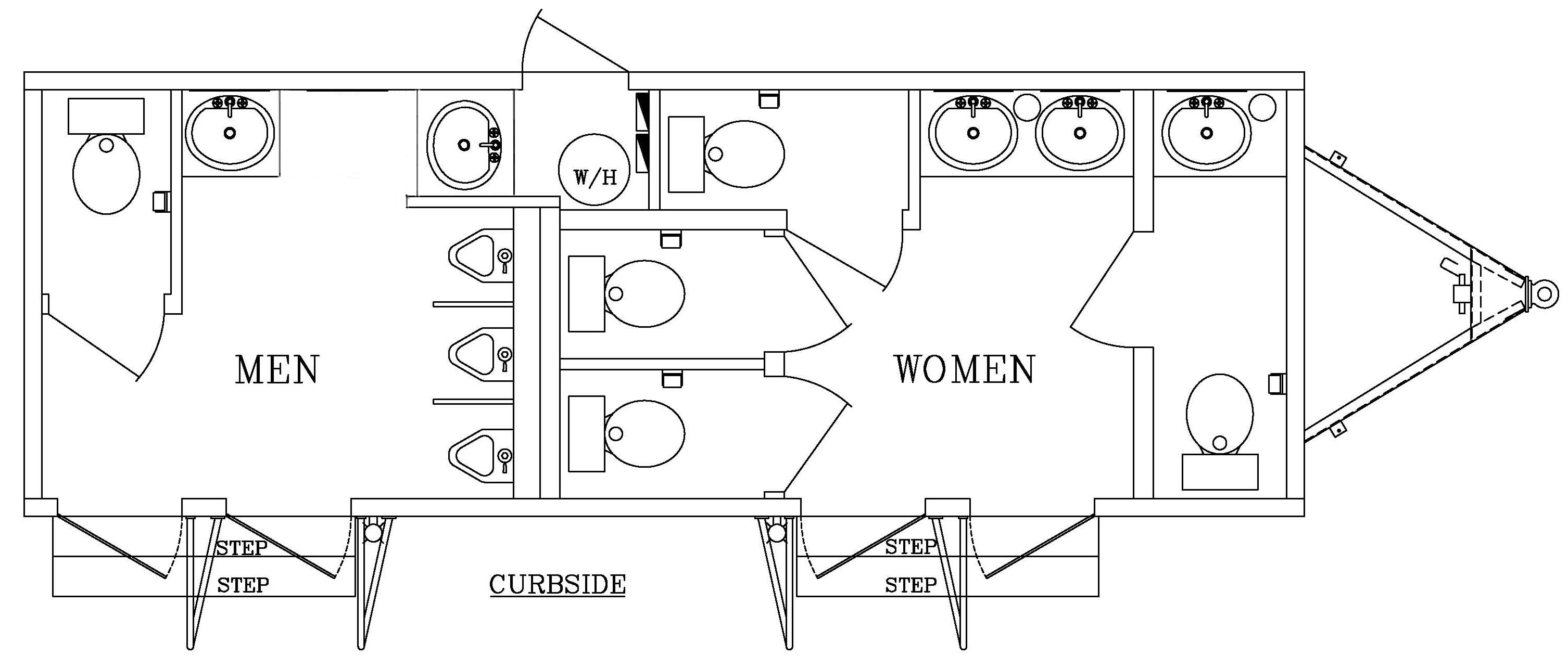 - One fully enclosed stall for men plus three urinals with privacy screens